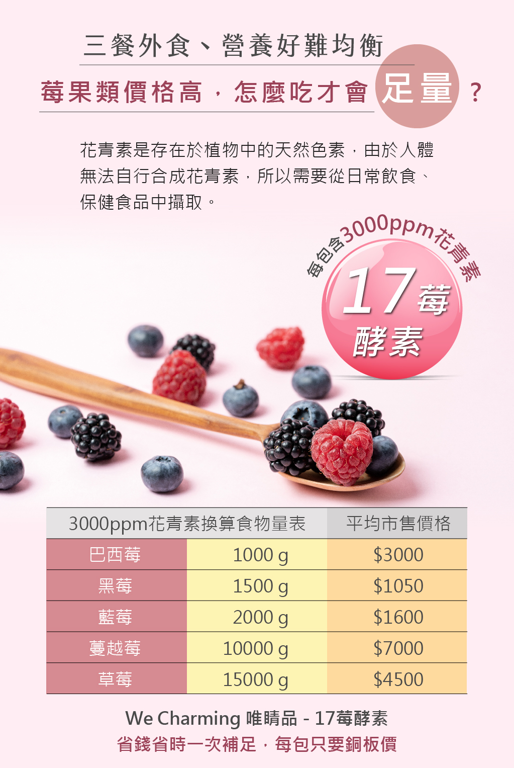 17種莓果萃取及綜合消化酵素,富含3000mg花青素!